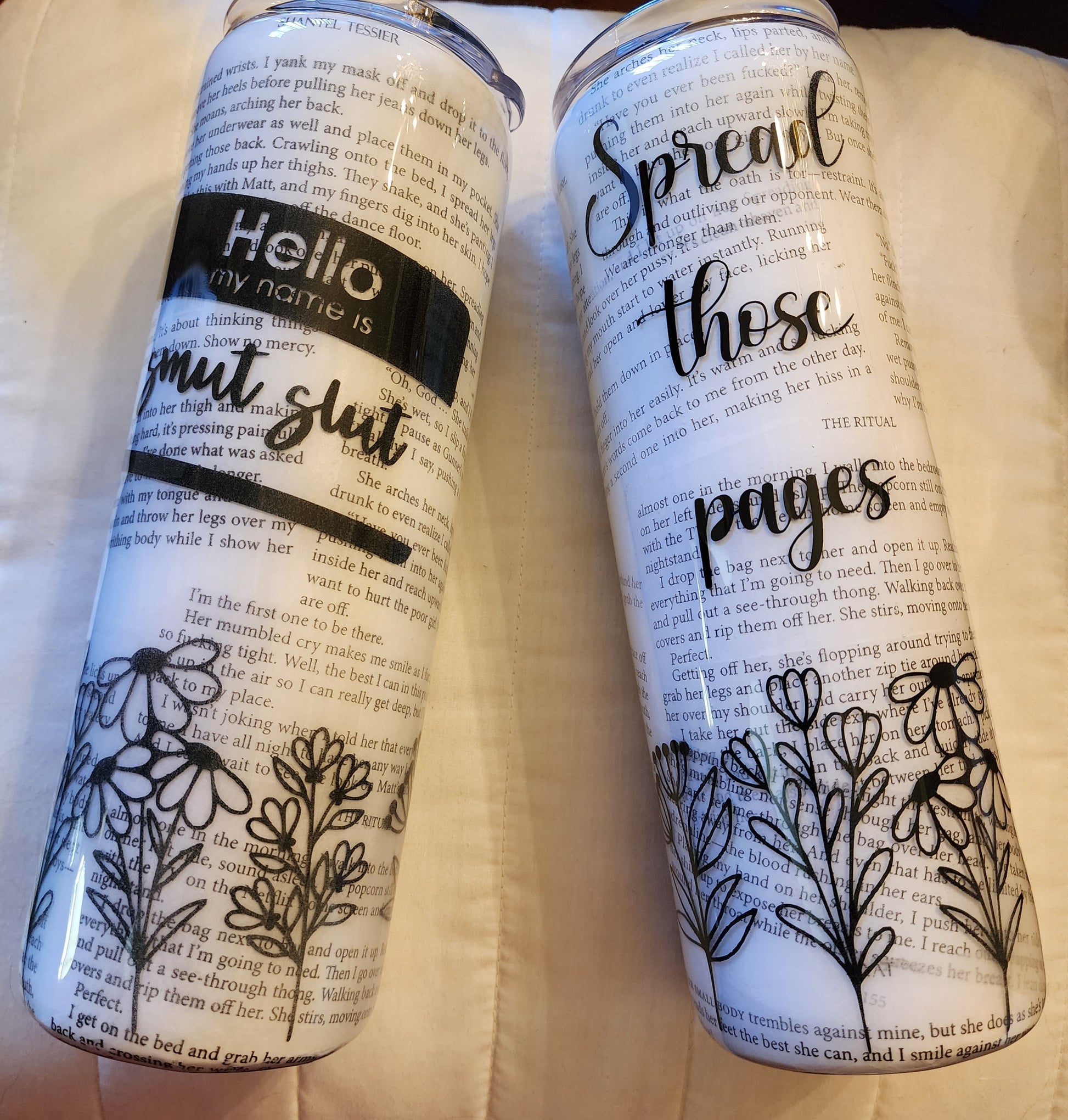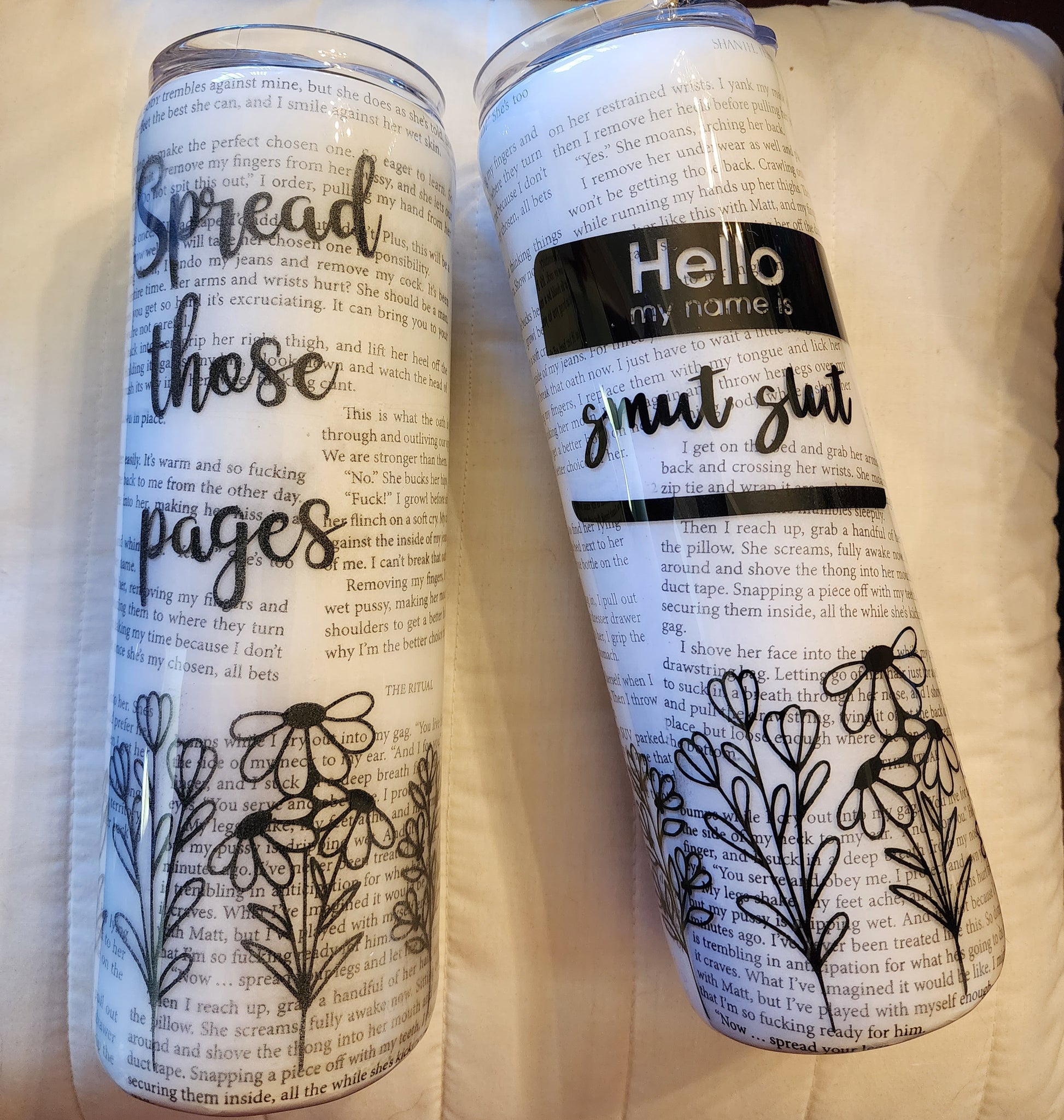 Send me pages from your favorite book and I can turn them into your favorite tumbler.